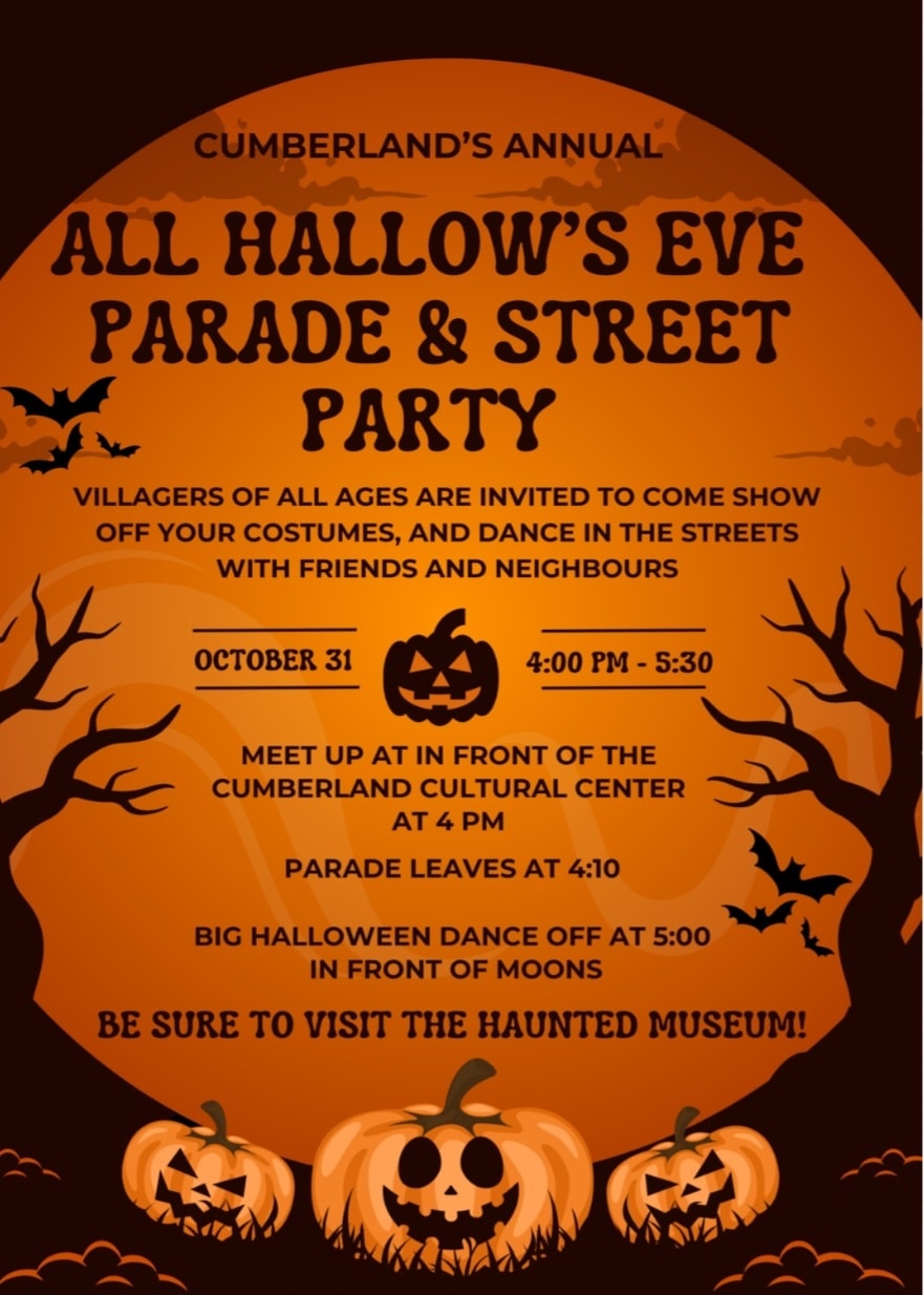 The 2025 Cumberland Halloween Parade is currently scheduled for Wednesday, October 29th, 2025 at 7:00pm along East First Street, Virginia Ave, and ends at W. Industrial Blvd. There will also be an All Hallow’s Eve Parade and Street Party on Friday, October 29th, 2025 from 4-5:30 pm. See here for details for the party.
