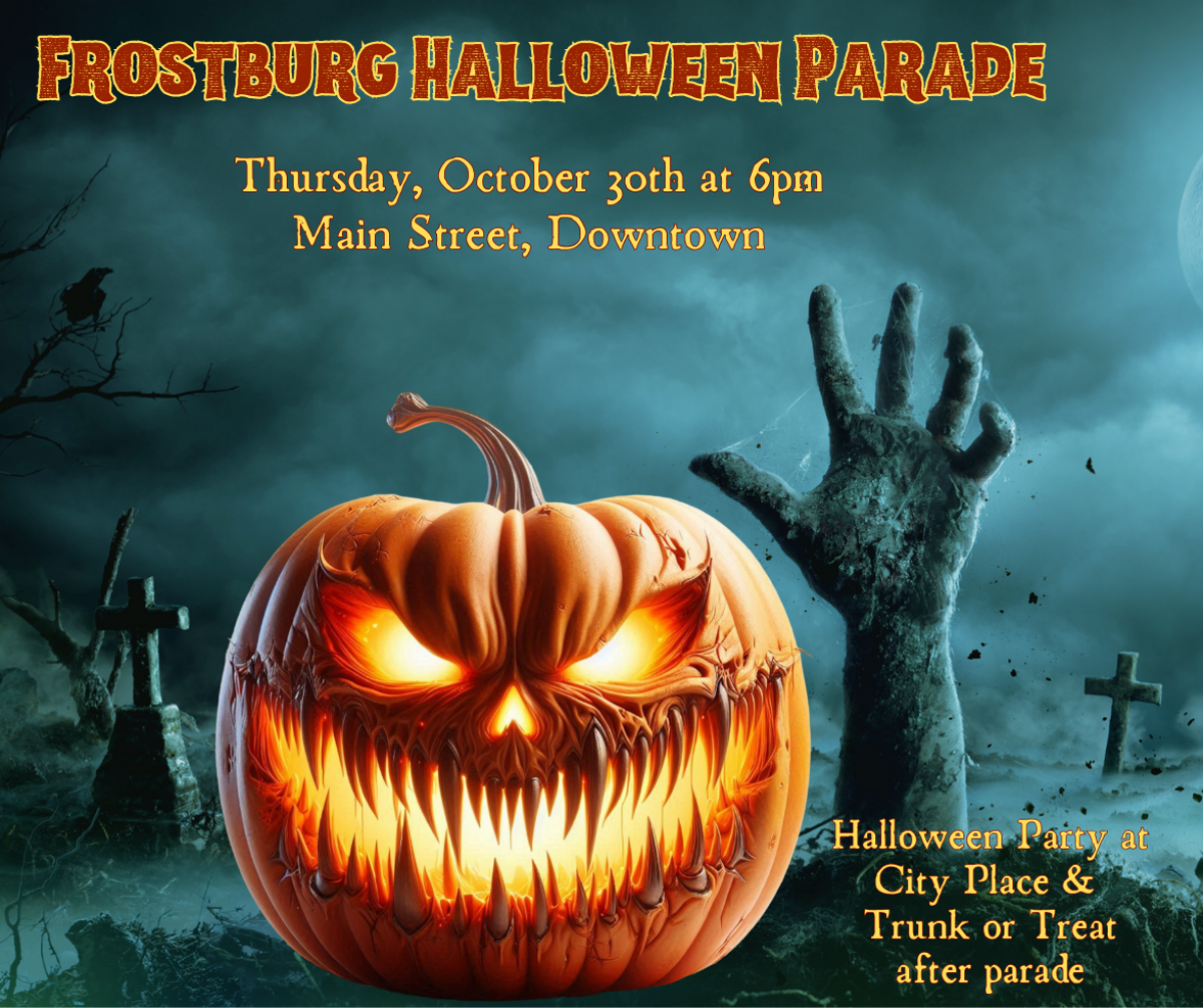 The 2025 Frostburg Halloween Parade is currently scheduled for Thursday, October 30th, 2025, at 6:00pm on Main Street in downtown Frostburg. A kid’s party (age 12 & under in costume accompanied by a parent) and haunted house at City Place (14 South Water Street) will immediately follow the parade. This annual event is supported by students from the Frostburg State University Recreation & Parks Management program as well as the FSU Office of Civic Engagement.